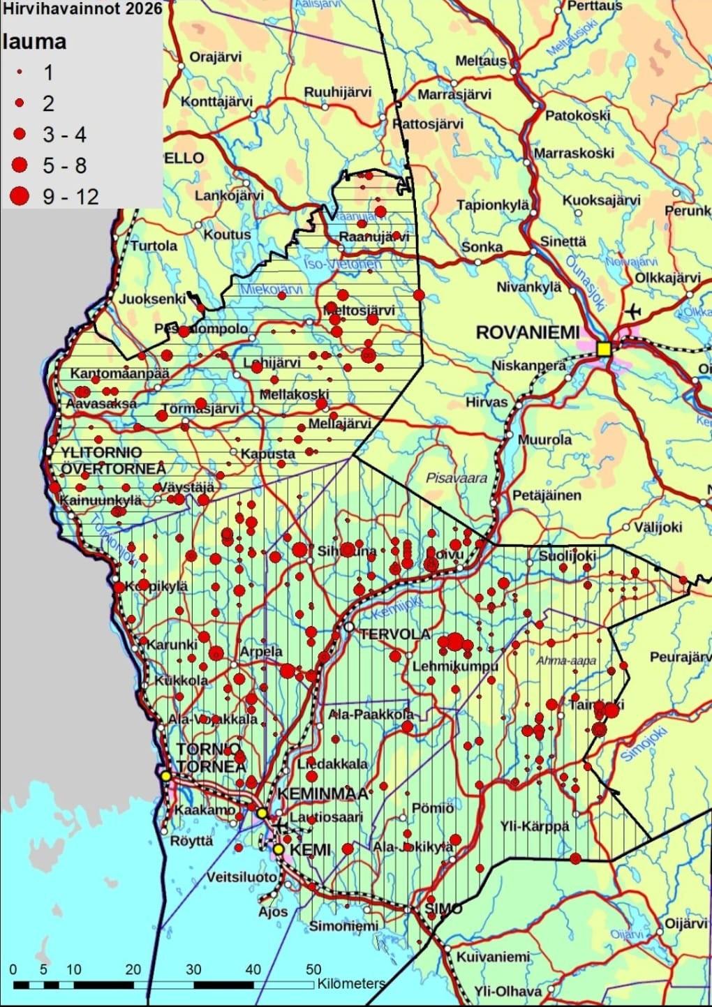 Lentolaskenta tehtiin LUKEn toimesta ja arvio kannasta oli 3 hirveä /1000 ha